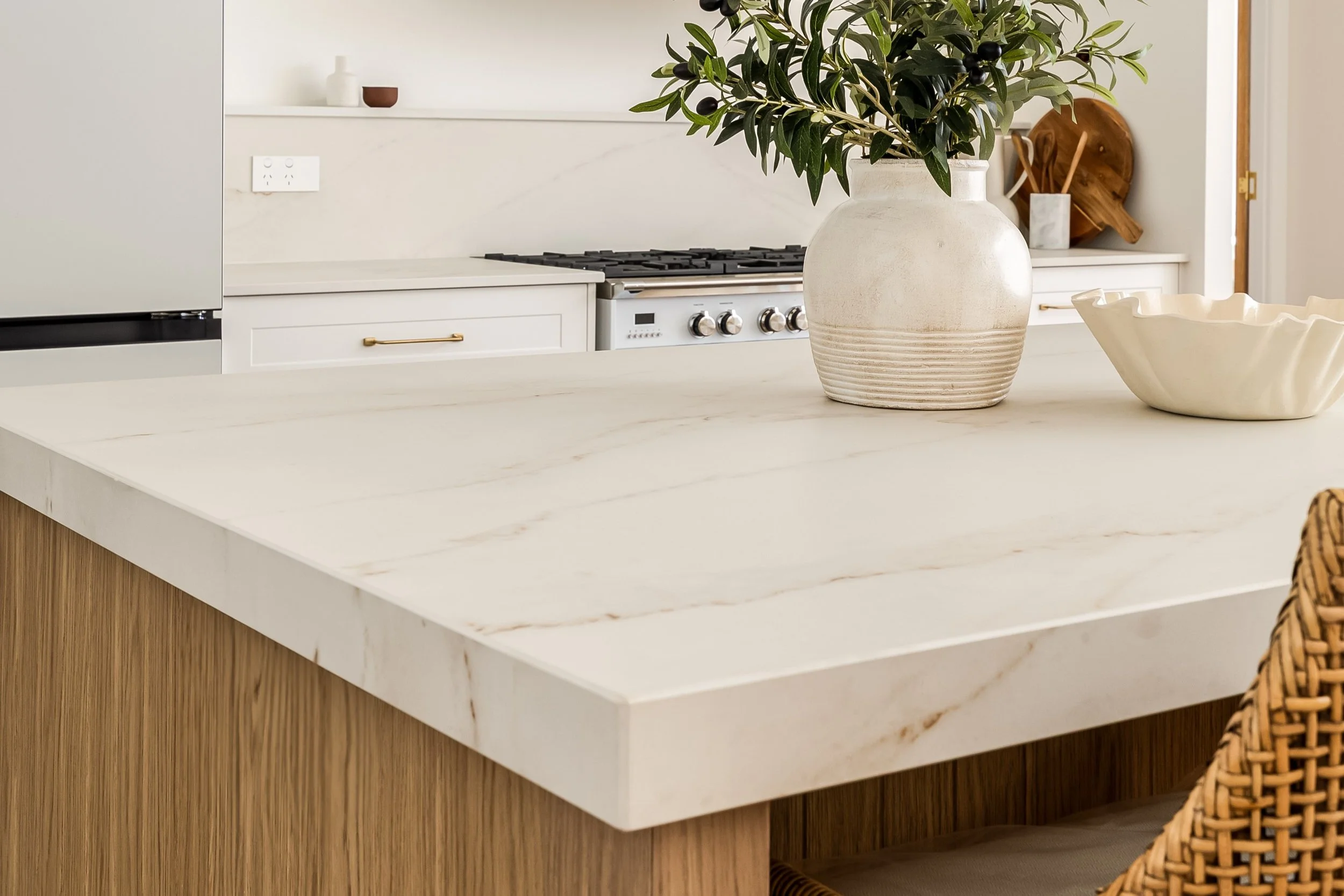 Kitchen - Dekton Rem - 60mm Island with Butler sink, 20mm to back run including half height splashback with capping.
